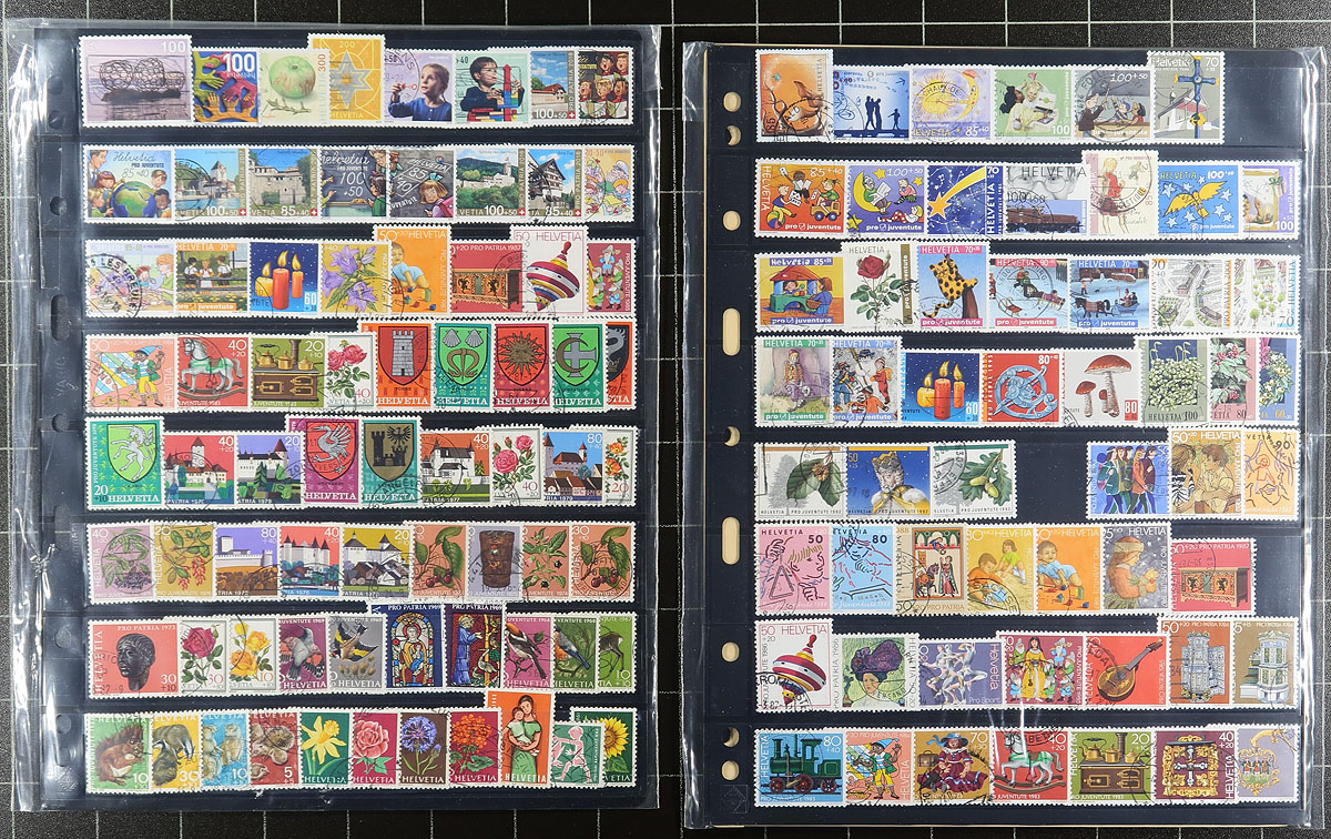 Used "back of the book" accumulation (with only a few "regular issues"), strong in semi-postals. On album and stock pages from a range of sources (meaning some duplication can be expected). Decent condition and lots of nice cancels, with catalogue values that add up quickly. Amongst all this material one could build a substantial collection of Pro-Juventute and Pro-Patria issues! Estimate =