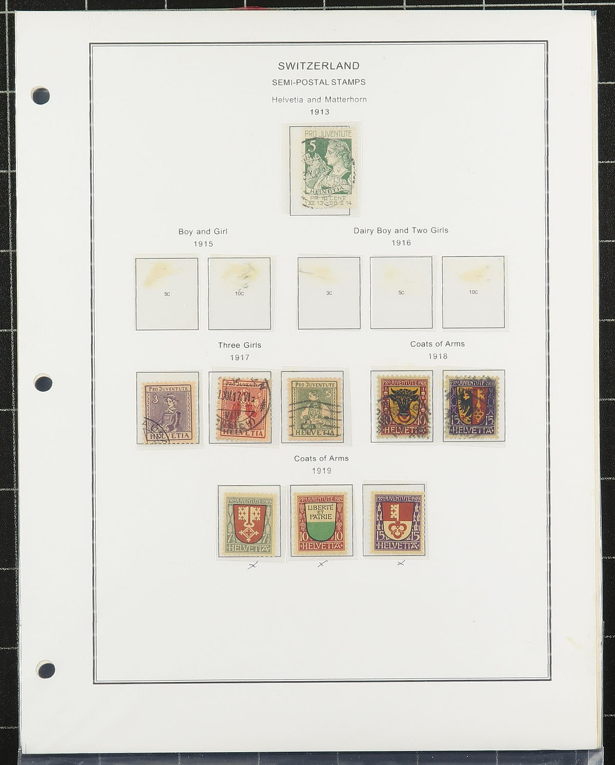 Used "back of the book" accumulation (with only a few "regular issues"), strong in semi-postals. On album and stock pages from a range of sources (meaning some duplication can be expected). Decent condition and lots of nice cancels, with catalogue values that add up quickly. Amongst all this material one could build a substantial collection of Pro-Juventute and Pro-Patria issues! Estimate =