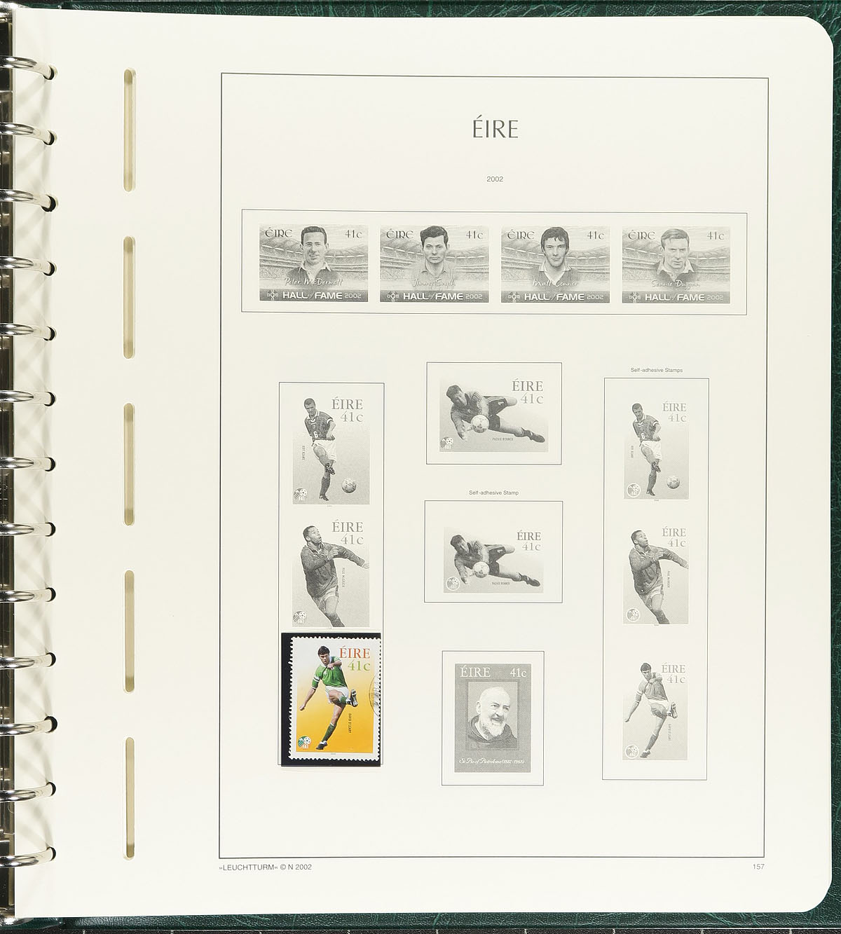 A chaotic group of mint and used on stock and album pages, with a good mix of early overprints on British stamps with an assortment of issues through to the end of the century. Condition appears to be quite good and there is some duplication. Various owner’s total catalogue value is about US$1000.00. A bonus to this is a 13-ring Lighthouse binder and matching slipcase, in Emerald green, with regular pages from 2000-2003 (a few stamps in owner applied black mounts, but binder alone retails at $145.00). Estimate =