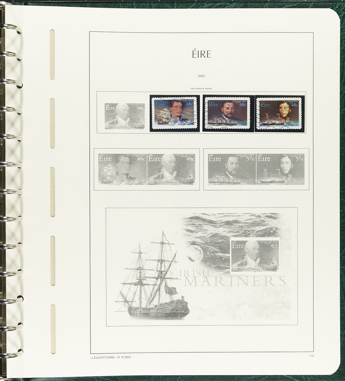 A chaotic group of mint and used on stock and album pages, with a good mix of early overprints on British stamps with an assortment of issues through to the end of the century. Condition appears to be quite good and there is some duplication. Various owner’s total catalogue value is about US$1000.00. A bonus to this is a 13-ring Lighthouse binder and matching slipcase, in Emerald green, with regular pages from 2000-2003 (a few stamps in owner applied black mounts, but binder alone retails at $145.00). Estimate =