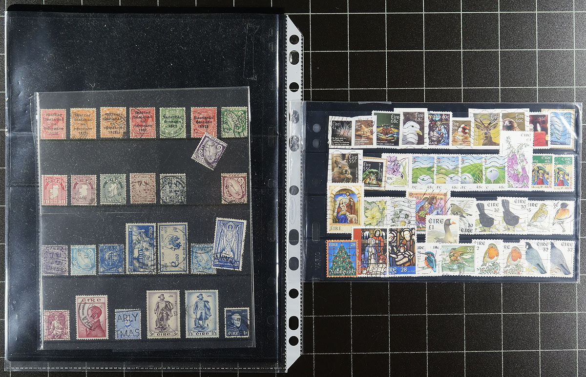 A chaotic group of mint and used on stock and album pages, with a good mix of early overprints on British stamps with an assortment of issues through to the end of the century. Condition appears to be quite good and there is some duplication. Various owner’s total catalogue value is about US$1000.00. A bonus to this is a 13-ring Lighthouse binder and matching slipcase, in Emerald green, with regular pages from 2000-2003 (a few stamps in owner applied black mounts, but binder alone retails at $145.00). Estimate =