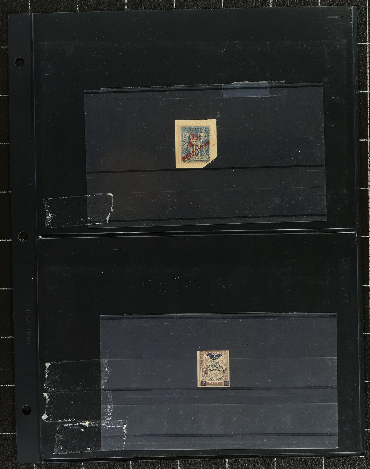 Five pages from a range of colonies, from a single stamp to a full page. A mix of mint and used, with better throughout. Offices in China #J22 15c overprinted and used on small piece with matching postmark (cat $350.00). New Caledonia #J5a (missing "i" in "Tenaire") mint with hinge remnant (cat $260.00). A page of Madagascar is mostly used (cat $201.00). The St. Pierre and Miquelon is a mint selection of trios and a complete booklet. The "France Libre" overprints on the Wallis and Futuna issues are missing the few very scarce denominations, but there is still lots of value here. Last but not least is a page of mostly mint from French Guiana (with lots of heavily hinged - cat $202.00). Estimate =