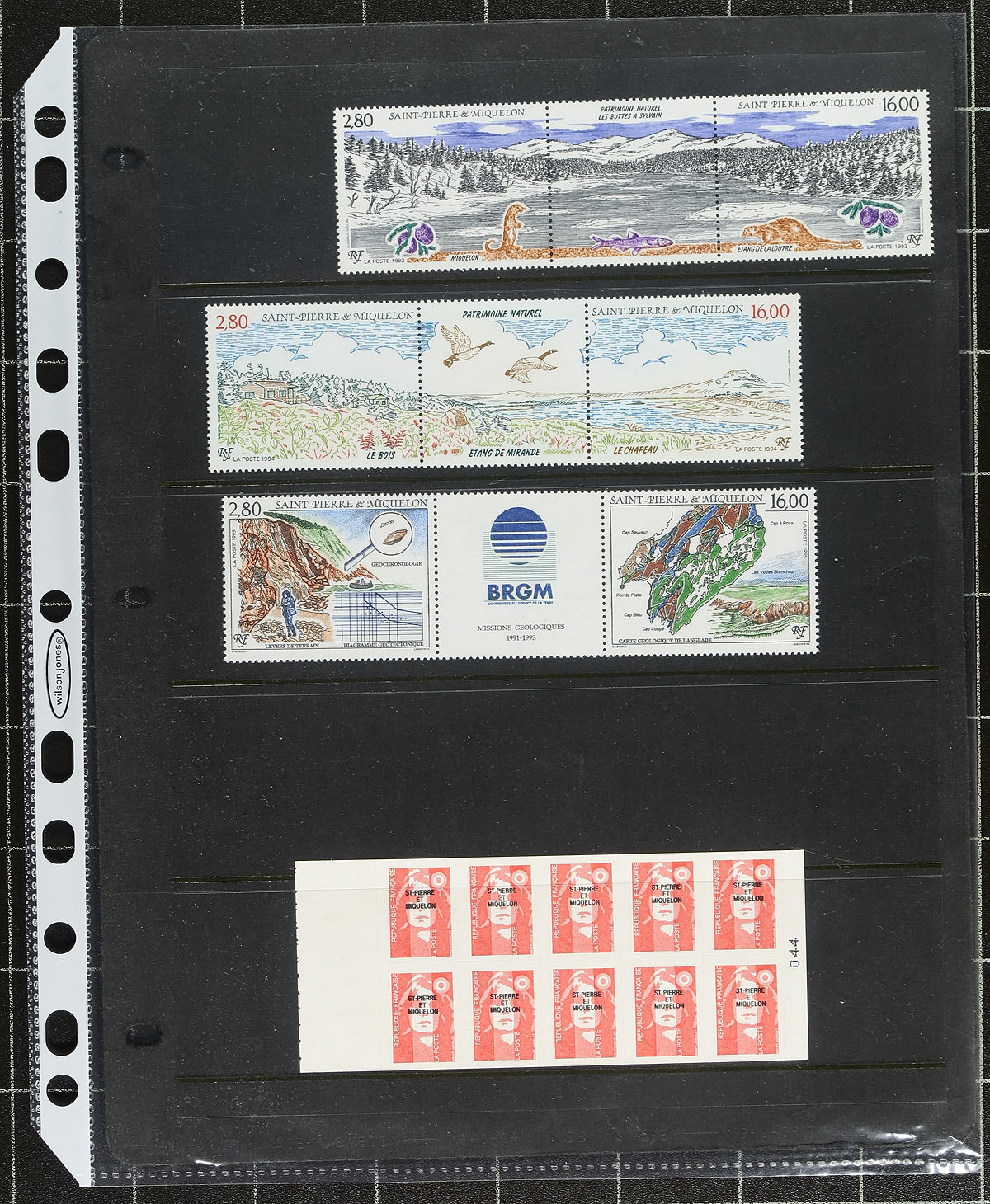 Five pages from a range of colonies, from a single stamp to a full page. A mix of mint and used, with better throughout. Offices in China #J22 15c overprinted and used on small piece with matching postmark (cat $350.00). New Caledonia #J5a (missing "i" in "Tenaire") mint with hinge remnant (cat $260.00). A page of Madagascar is mostly used (cat $201.00). The St. Pierre and Miquelon is a mint selection of trios and a complete booklet. The "France Libre" overprints on the Wallis and Futuna issues are missing the few very scarce denominations, but there is still lots of value here. Last but not least is a page of mostly mint from French Guiana (with lots of heavily hinged - cat $202.00). Estimate =