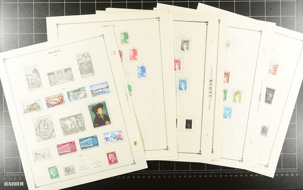 A small, but dense bundle of used French material from the 1850's-2000, with a bit of assorted colonial material. There are parts of five collections still mounted on their original pages. A few stockpages of assorted used were formerly bid board lots, with a small bundle of "102" cards and a freezer bag packed with 200g/8 oz off paper. Expect a bit of mixed condition and some duplication. Estimate =