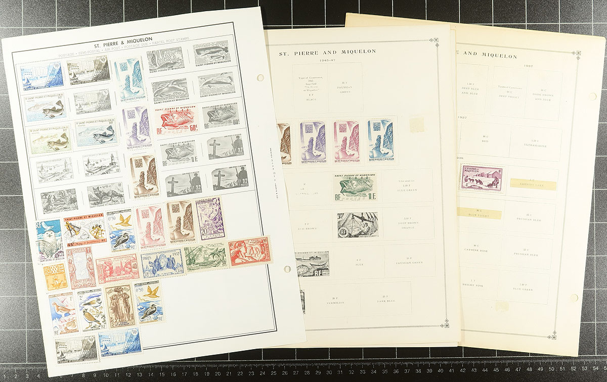 A small, but dense bundle of used French material from the 1850's-2000, with a bit of assorted colonial material. There are parts of five collections still mounted on their original pages. A few stockpages of assorted used were formerly bid board lots, with a small bundle of "102" cards and a freezer bag packed with 200g/8 oz off paper. Expect a bit of mixed condition and some duplication. Estimate =