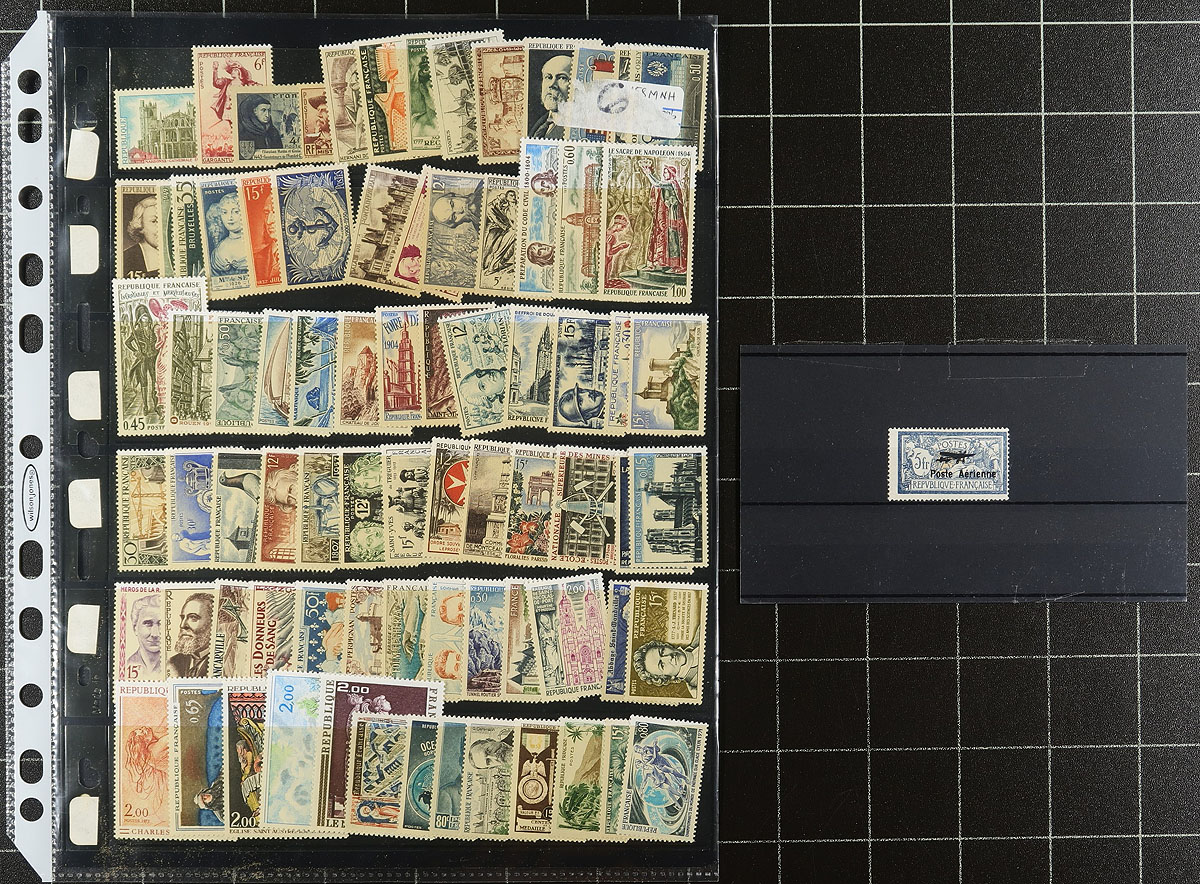 Mint "Art" stamps, plus airmail #C2 (hinge remnant, cat $200.00), and an assortment of 20th century mostly mint in three stockbooks and a double-sided stock page. Generally clean, with a mix of lightly hinged and never hinged. The 32-page stockbooks themselves are something. The red medium-sized "Elephant" is in good condition (a few stickers should remove easily). The pages in the pair of luxurious "Yvert" stockbooks with fabric burgundy covers are fine, but the internal binding is shot (a patient person, using online videos might be able to repair them). Estimate =