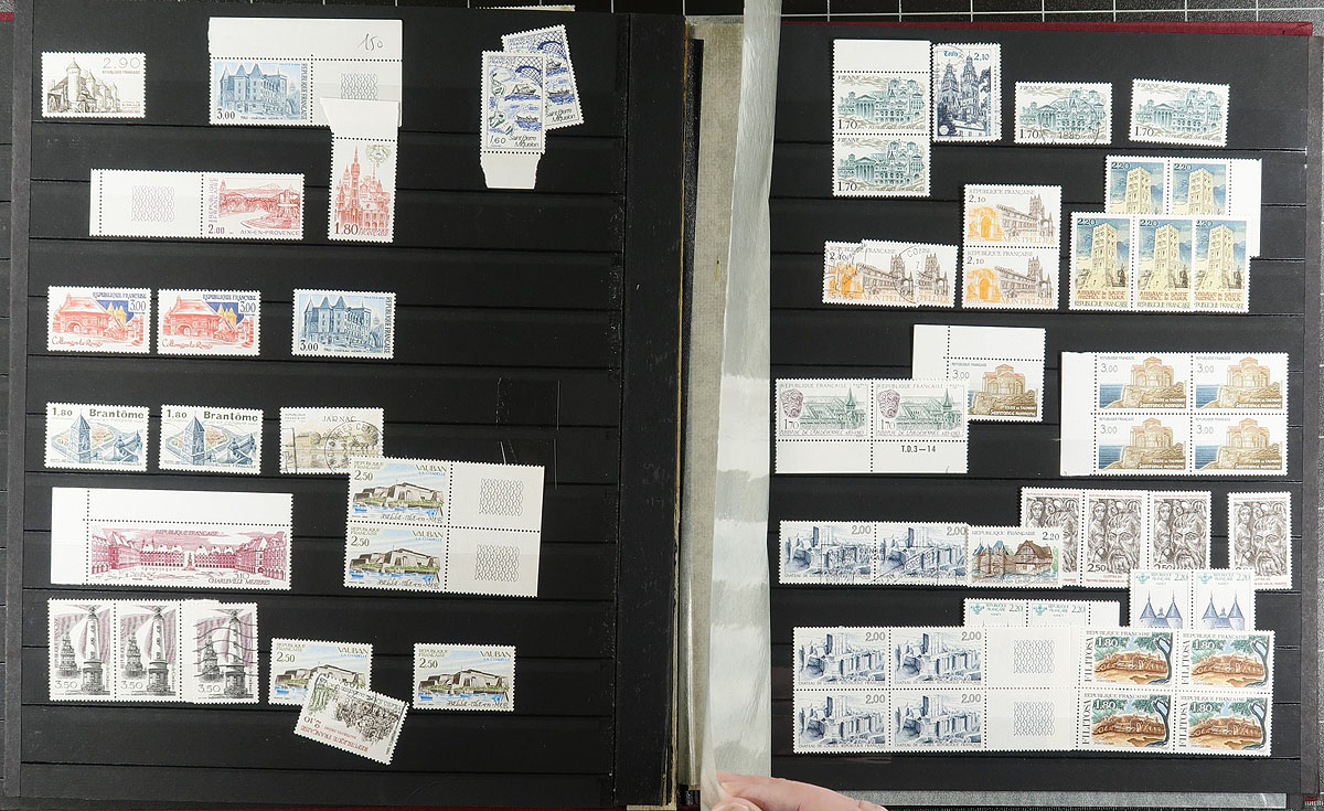 Mint "Art" stamps, plus airmail #C2 (hinge remnant, cat $200.00), and an assortment of 20th century mostly mint in three stockbooks and a double-sided stock page. Generally clean, with a mix of lightly hinged and never hinged. The 32-page stockbooks themselves are something. The red medium-sized "Elephant" is in good condition (a few stickers should remove easily). The pages in the pair of luxurious "Yvert" stockbooks with fabric burgundy covers are fine, but the internal binding is shot (a patient person, using online videos might be able to repair them). Estimate =