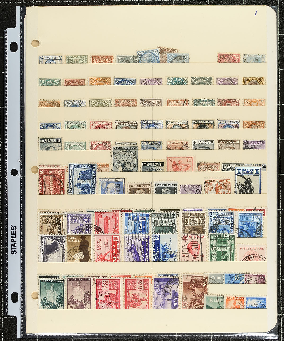 An accumulation with just over a century of used stamps, including lots of 19th and early 20th century issues (including the 1911 "Union of Italy" set), with a bit of airmail. Condition looks better than normal. A bit of duplication is to be expected. Fairly recently the owner catalogued this lot, by Scott, at over US$1300.00 ($1755.00 CDN). Estimate =