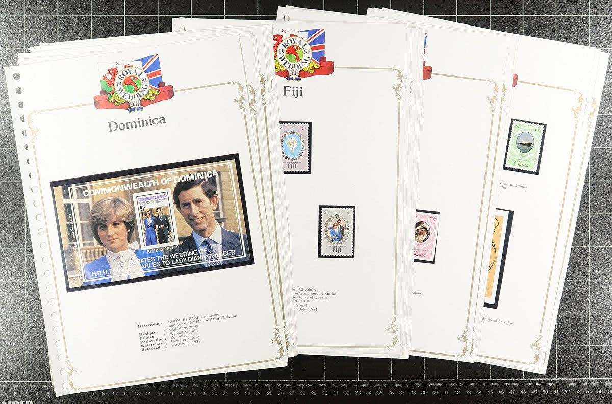 Princess Diana Thematic collection in a small carton. A smaller section of the 1981 "Royal Wedding" than are normally seen (but includes the better North Korea issues), with a sampling of "21st birthday" sets. The bulk of the material is the material produced after her passing (which was produced in much smaller quantities but still had enormous original cost). Includes stamps, souvenir sheets, first day covers (including a section from just Belize). Hundreds of items, mostly mint, never hinged. The perfect lot for the modern-day monarchist. Estimate =