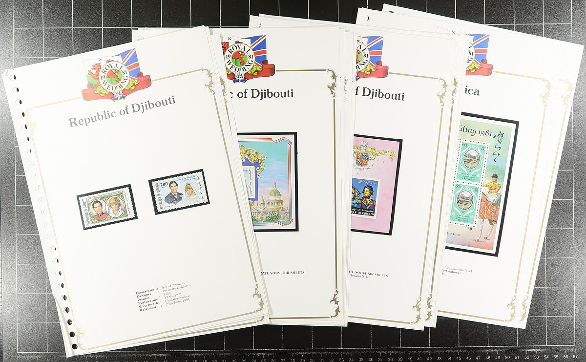 Princess Diana Thematic collection in a small carton. A smaller section of the 1981 "Royal Wedding" than are normally seen (but includes the better North Korea issues), with a sampling of "21st birthday" sets. The bulk of the material is the material produced after her passing (which was produced in much smaller quantities but still had enormous original cost). Includes stamps, souvenir sheets, first day covers (including a section from just Belize). Hundreds of items, mostly mint, never hinged. The perfect lot for the modern-day monarchist. Estimate =