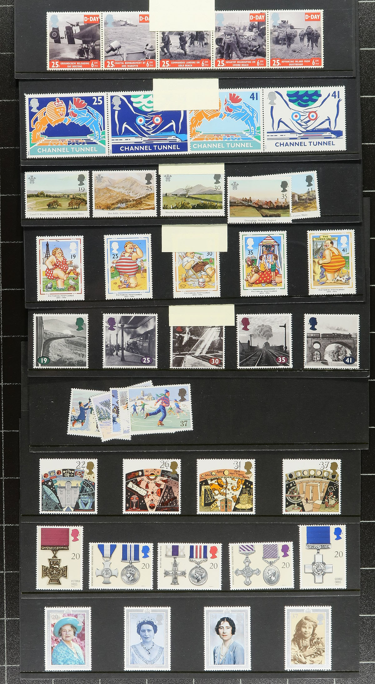 Attractive 1990's-strong mint lot, including 11 "Greetings Stamps" booklets (bit of duplication) and three "Smilers" panes (these from 2008) resulting in 170 "First Class" stamps. There are two small bundles of mint sets, which are the stamp and card portion of presentation packs (face £100.00). All are mint, never hinged. No Machins. Total Face Value £389.00 ($719.65 CDN). Huge catalogue value. Estimate =