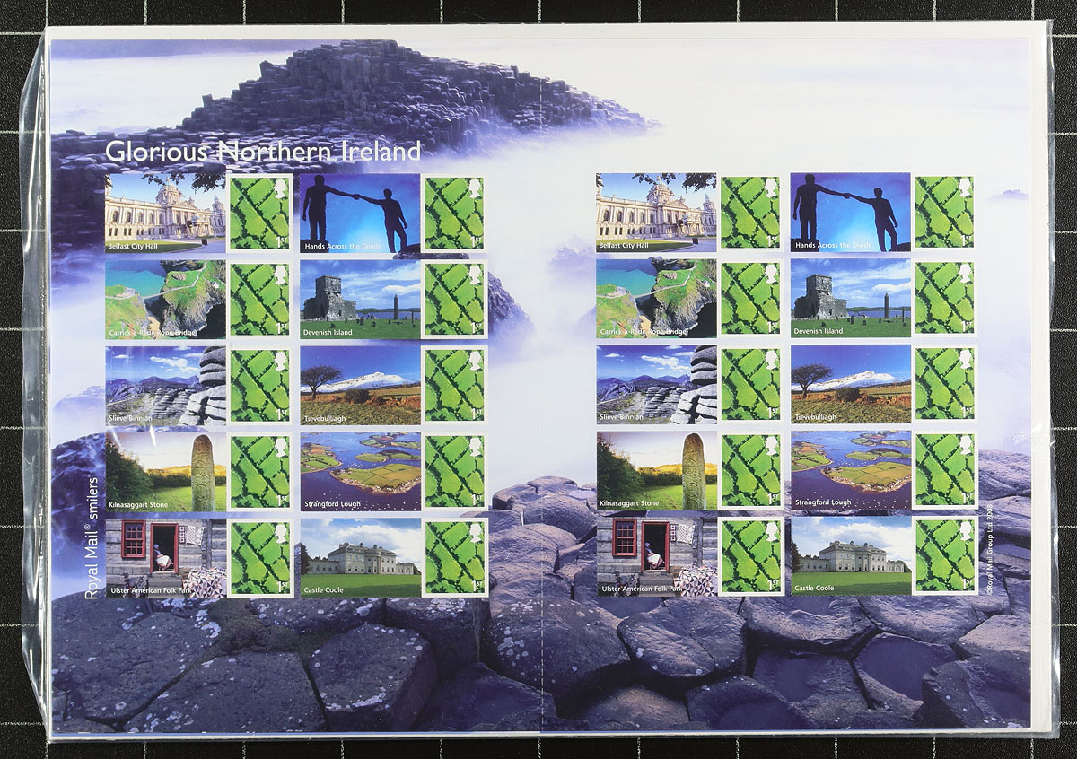 Attractive 1990's-strong mint lot, including 11 "Greetings Stamps" booklets (bit of duplication) and three "Smilers" panes (these from 2008) resulting in 170 "First Class" stamps. There are two small bundles of mint sets, which are the stamp and card portion of presentation packs (face £100.00). All are mint, never hinged. No Machins. Total Face Value £389.00 ($719.65 CDN). Huge catalogue value. Estimate =
