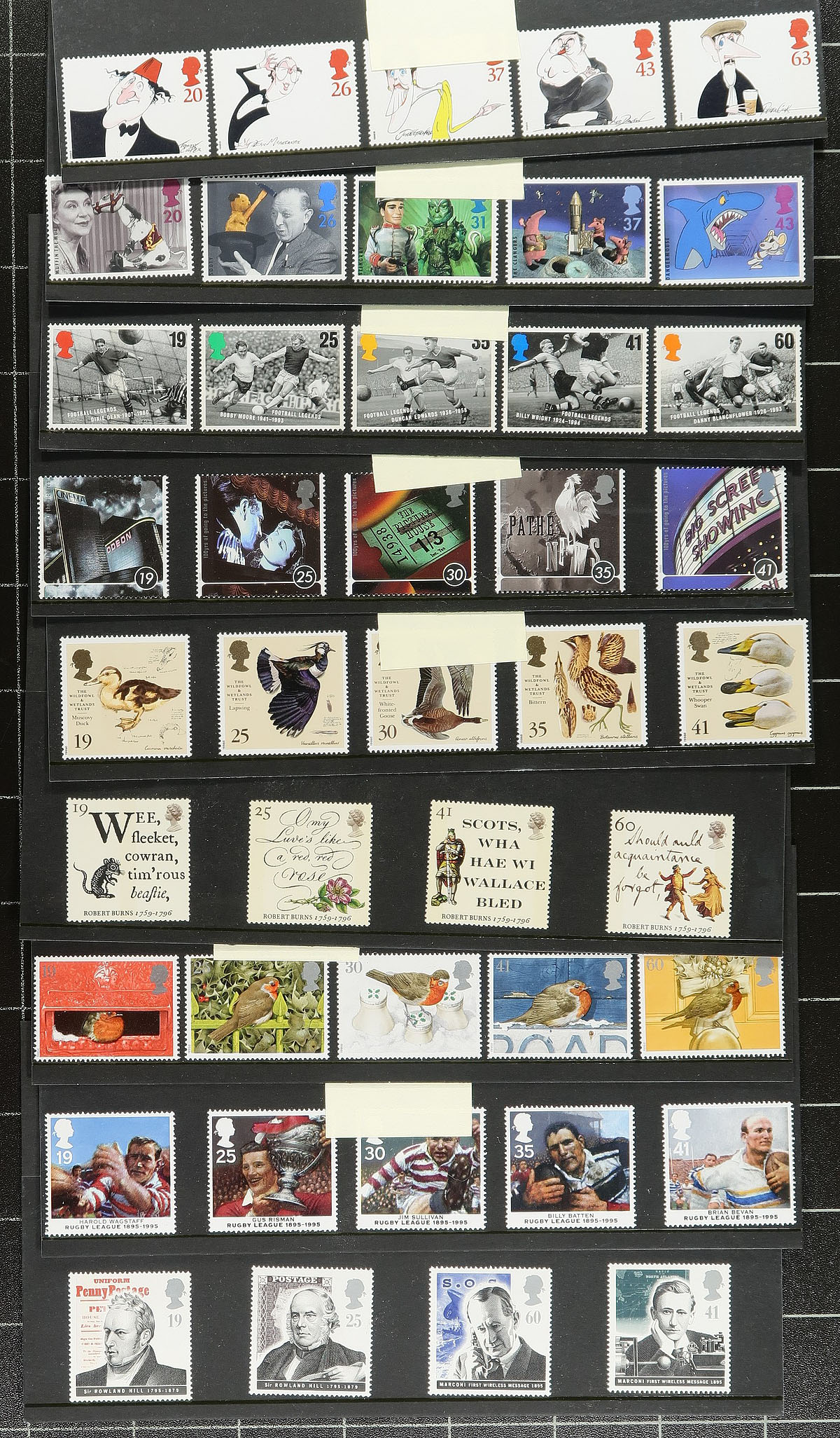 Attractive 1990's-strong mint lot, including 11 "Greetings Stamps" booklets (bit of duplication) and three "Smilers" panes (these from 2008) resulting in 170 "First Class" stamps. There are two small bundles of mint sets, which are the stamp and card portion of presentation packs (face £100.00). All are mint, never hinged. No Machins. Total Face Value £389.00 ($719.65 CDN). Huge catalogue value. Estimate =