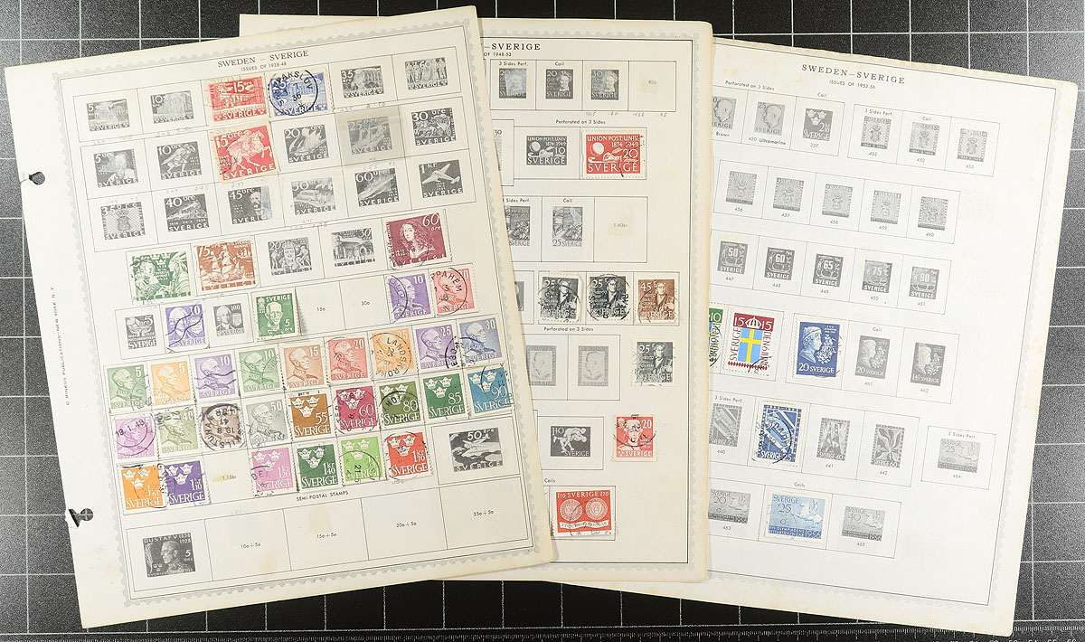 A used accumulation, with a mounted collection up to 1980, a couple of pages with some more recent material (turn of the century). The "wild card" includes some Officials, including from the first issue and a used copy of #2 with the "F.yra" error listed in Facit. A bit of digging may be required, but there is lots of catalogue here. Estimate =