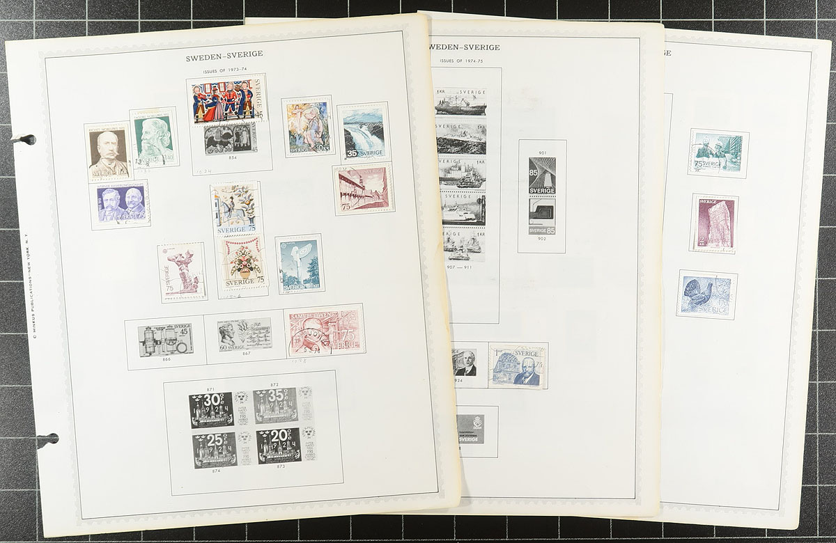 A used accumulation, with a mounted collection up to 1980, a couple of pages with some more recent material (turn of the century). The "wild card" includes some Officials, including from the first issue and a used copy of #2 with the "F.yra" error listed in Facit. A bit of digging may be required, but there is lots of catalogue here. Estimate =