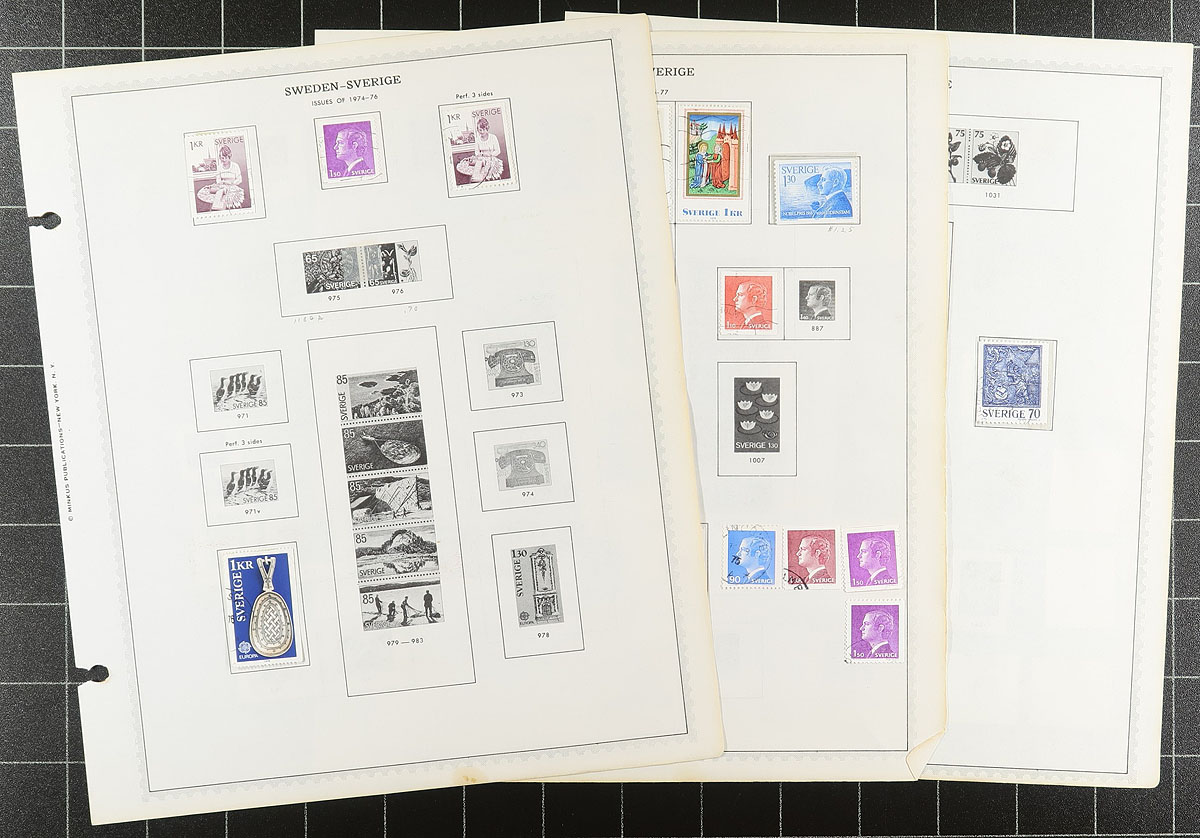 A used accumulation, with a mounted collection up to 1980, a couple of pages with some more recent material (turn of the century). The "wild card" includes some Officials, including from the first issue and a used copy of #2 with the "F.yra" error listed in Facit. A bit of digging may be required, but there is lots of catalogue here. Estimate =