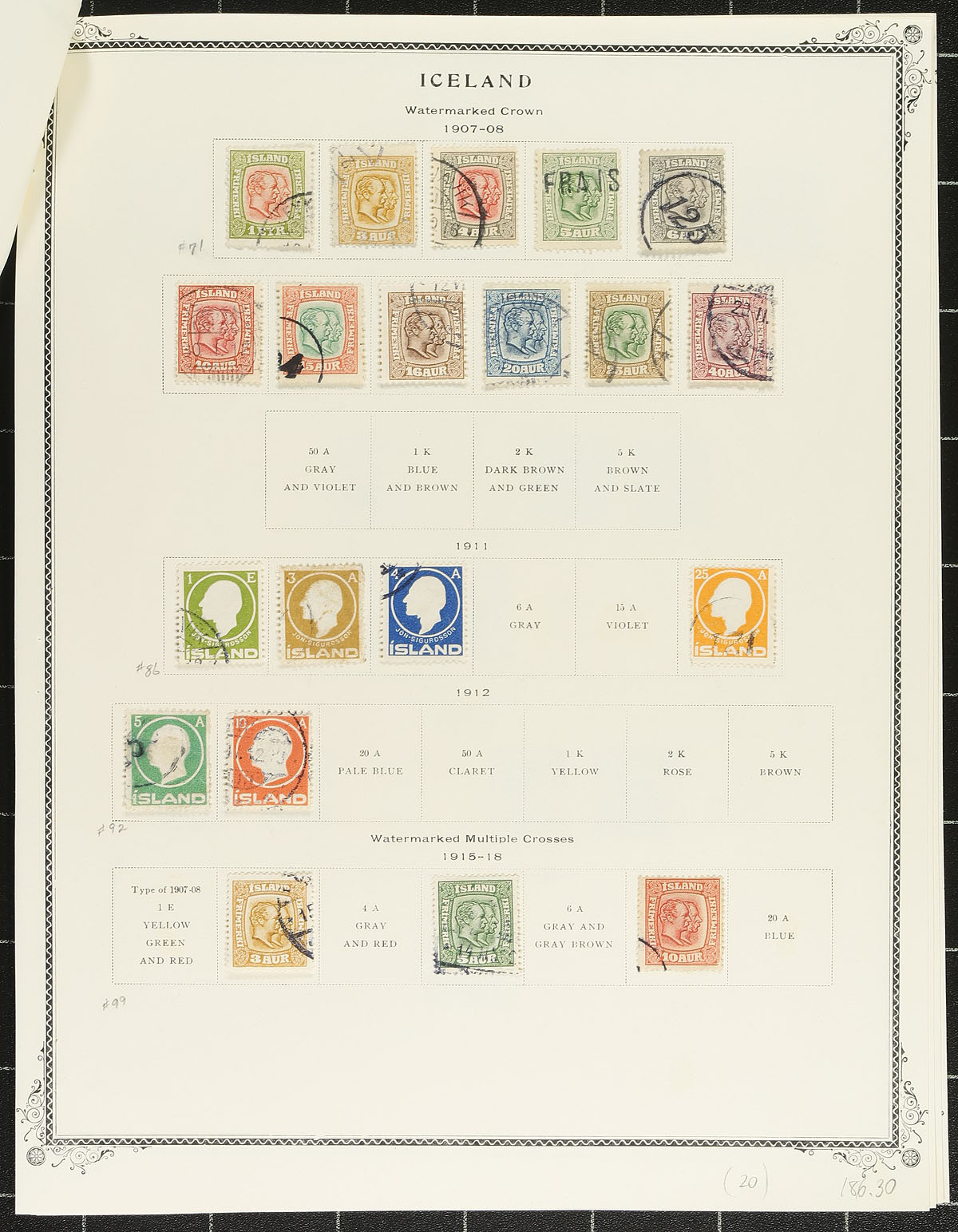 Two nicely complementing groups of almost 300, mostly different, used Iceland from 1876-1998. The first part is a mouthed collection up to 1926, the second is 1921-1998 on black stockpages. There is a wide range of issues, no revenue cancels, and lots of better singles. A few minor faults are to be expected. Owner’s 2023 Scott US$692.35 =