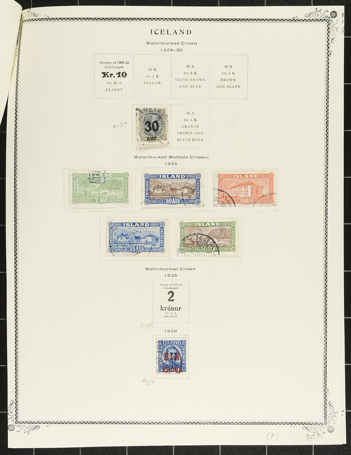Two nicely complementing groups of almost 300, mostly different, used Iceland from 1876-1998. The first part is a mouthed collection up to 1926, the second is 1921-1998 on black stockpages. There is a wide range of issues, no revenue cancels, and lots of better singles. A few minor faults are to be expected. Owner’s 2023 Scott US$692.35 =