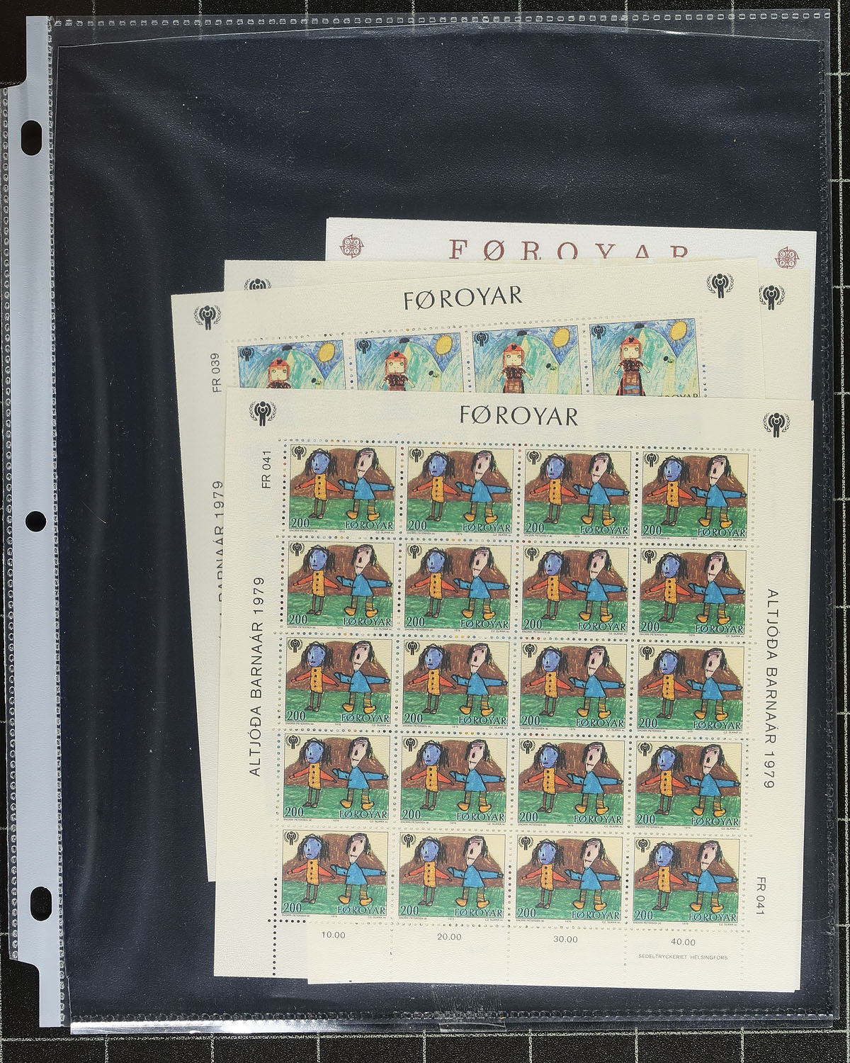 All late 20th century and all mint never hinged, with a selection from each country. The Denmark consists of 8 different complete booklets. Faroes is represented by 6 complete sets in panes of 20, with topical appeal for Bird, Children, Animal, Europa collectors. The Greenland is a nearly complete run from 1987-1994, with a few semi-postals. An attractively mounted group that had significant original cost. 2023 Scott US$635.35 =