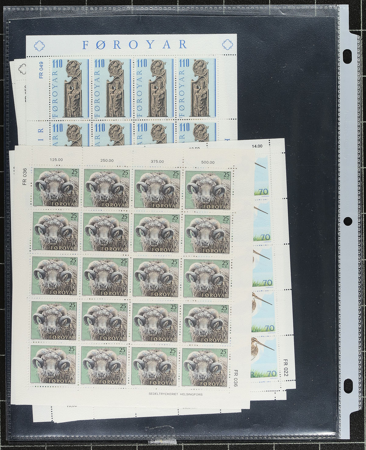 All late 20th century and all mint never hinged, with a selection from each country. The Denmark consists of 8 different complete booklets. Faroes is represented by 6 complete sets in panes of 20, with topical appeal for Bird, Children, Animal, Europa collectors. The Greenland is a nearly complete run from 1987-1994, with a few semi-postals. An attractively mounted group that had significant original cost. 2023 Scott US$635.35 =