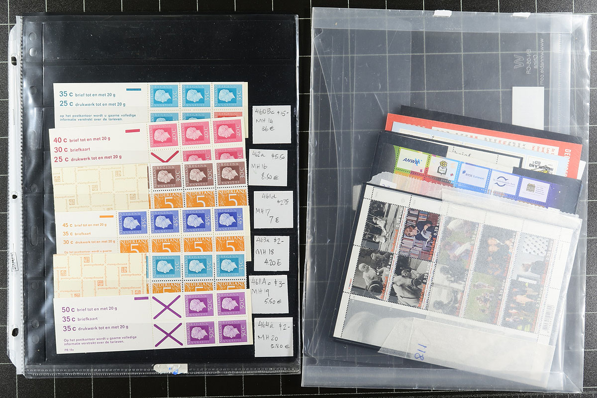 Mint assortment of year (1990-1993), presentation (1988-2002) and mini-sheet (2012) packs, plus some sets and singles and more mini-sheets on stockpages and some complete booklets. There is some Netherland-Indies (with a sextet of early postage due colour trials, mixed condition) and Suriname. Mostly never hinged, few faults to be expected. Estimate =