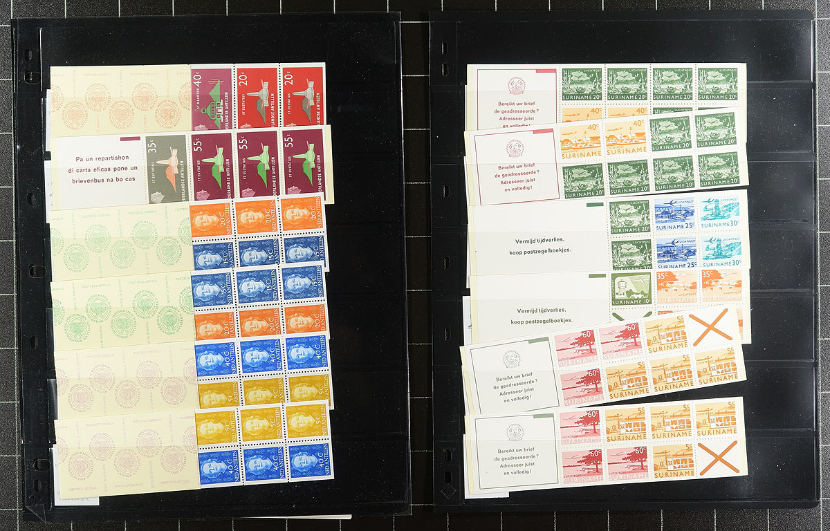Mint assortment of year (1990-1993), presentation (1988-2002) and mini-sheet (2012) packs, plus some sets and singles and more mini-sheets on stockpages and some complete booklets. There is some Netherland-Indies (with a sextet of early postage due colour trials, mixed condition) and Suriname. Mostly never hinged, few faults to be expected. Estimate =