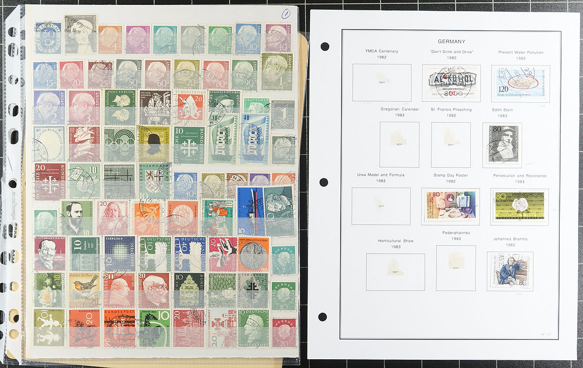 The balance of a local estate, with a series of stock pages, album sections with an assortment of Germany (West and East), Berlin and a nice selection of Bavaria. A couple of thousand stamps here, more used than mint, including some back of the book. The material is wide ranging from 19th century "classics", Bavaria includes #19 (with minor thins), coil singles and multiples (many used), registration labels, computer generated stamps, etc. Offered as received. Estimate =