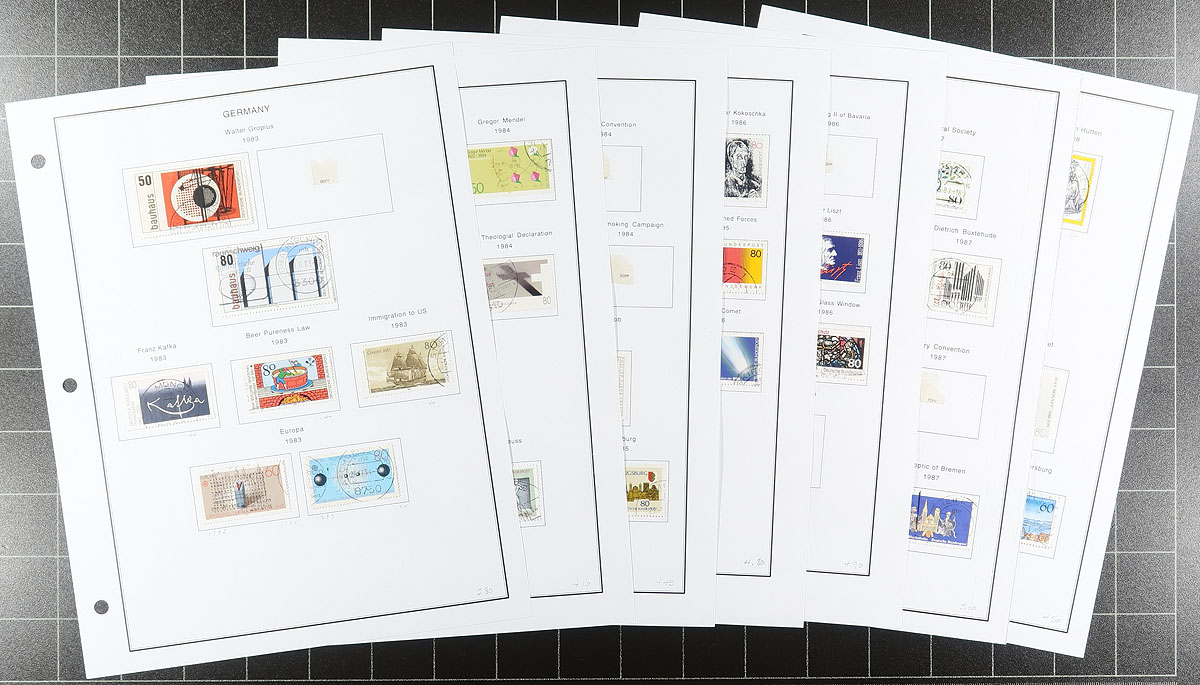 The balance of a local estate, with a series of stock pages, album sections with an assortment of Germany (West and East), Berlin and a nice selection of Bavaria. A couple of thousand stamps here, more used than mint, including some back of the book. The material is wide ranging from 19th century "classics", Bavaria includes #19 (with minor thins), coil singles and multiples (many used), registration labels, computer generated stamps, etc. Offered as received. Estimate =