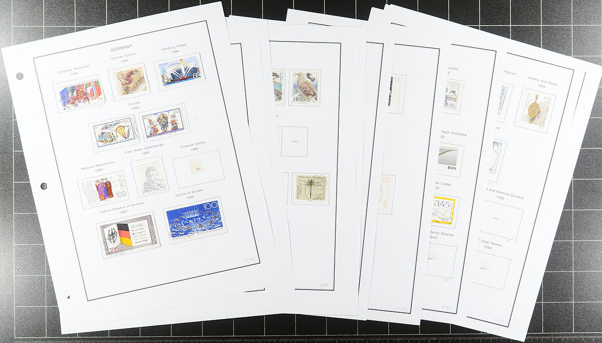 The balance of a local estate, with a series of stock pages, album sections with an assortment of Germany (West and East), Berlin and a nice selection of Bavaria. A couple of thousand stamps here, more used than mint, including some back of the book. The material is wide ranging from 19th century "classics", Bavaria includes #19 (with minor thins), coil singles and multiples (many used), registration labels, computer generated stamps, etc. Offered as received. Estimate =