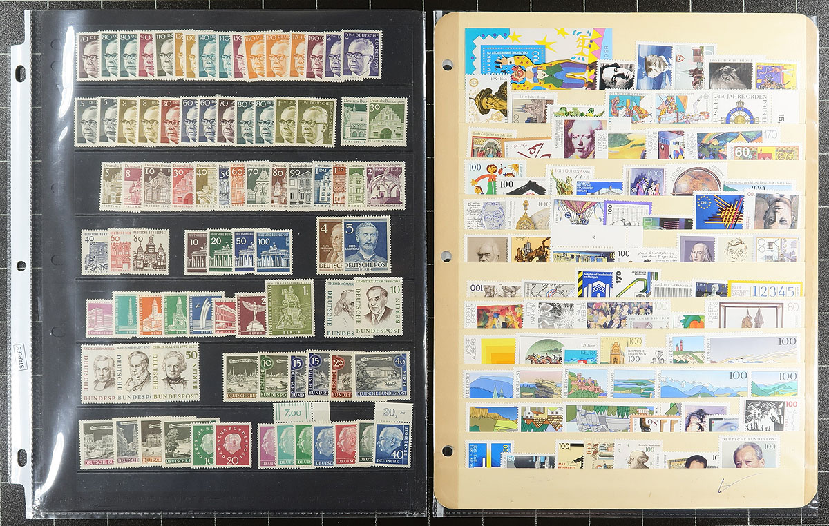 Mint holding #2: Dealer pages, bidboard lots and some mounted. 20th century material with strength in 1950's Berlin, 1960’s and 1987-1993 West Germany. Mostly regular issue, the majority are never hinged. Few faults and duplication to be expected. Substantial original cost and hundreds of dollars of catalogue value. Estimate =