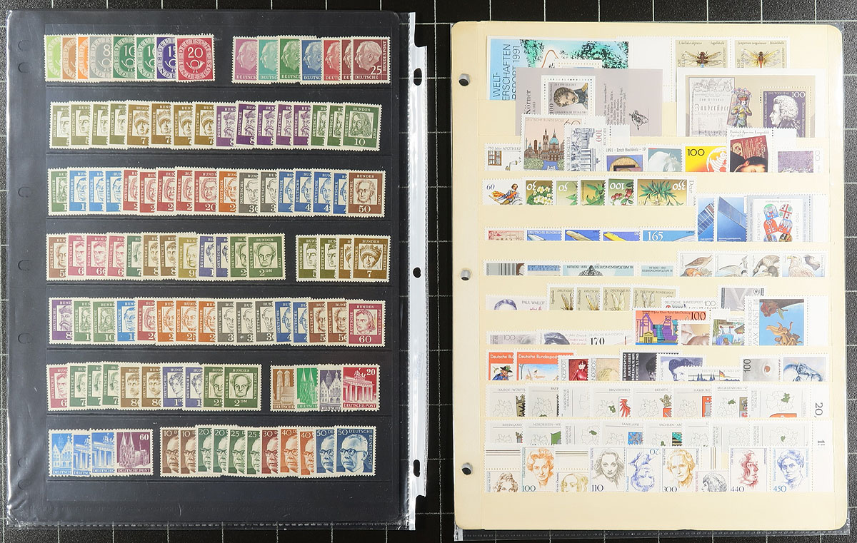 Mint holding #2: Dealer pages, bidboard lots and some mounted. 20th century material with strength in 1950's Berlin, 1960’s and 1987-1993 West Germany. Mostly regular issue, the majority are never hinged. Few faults and duplication to be expected. Substantial original cost and hundreds of dollars of catalogue value. Estimate =