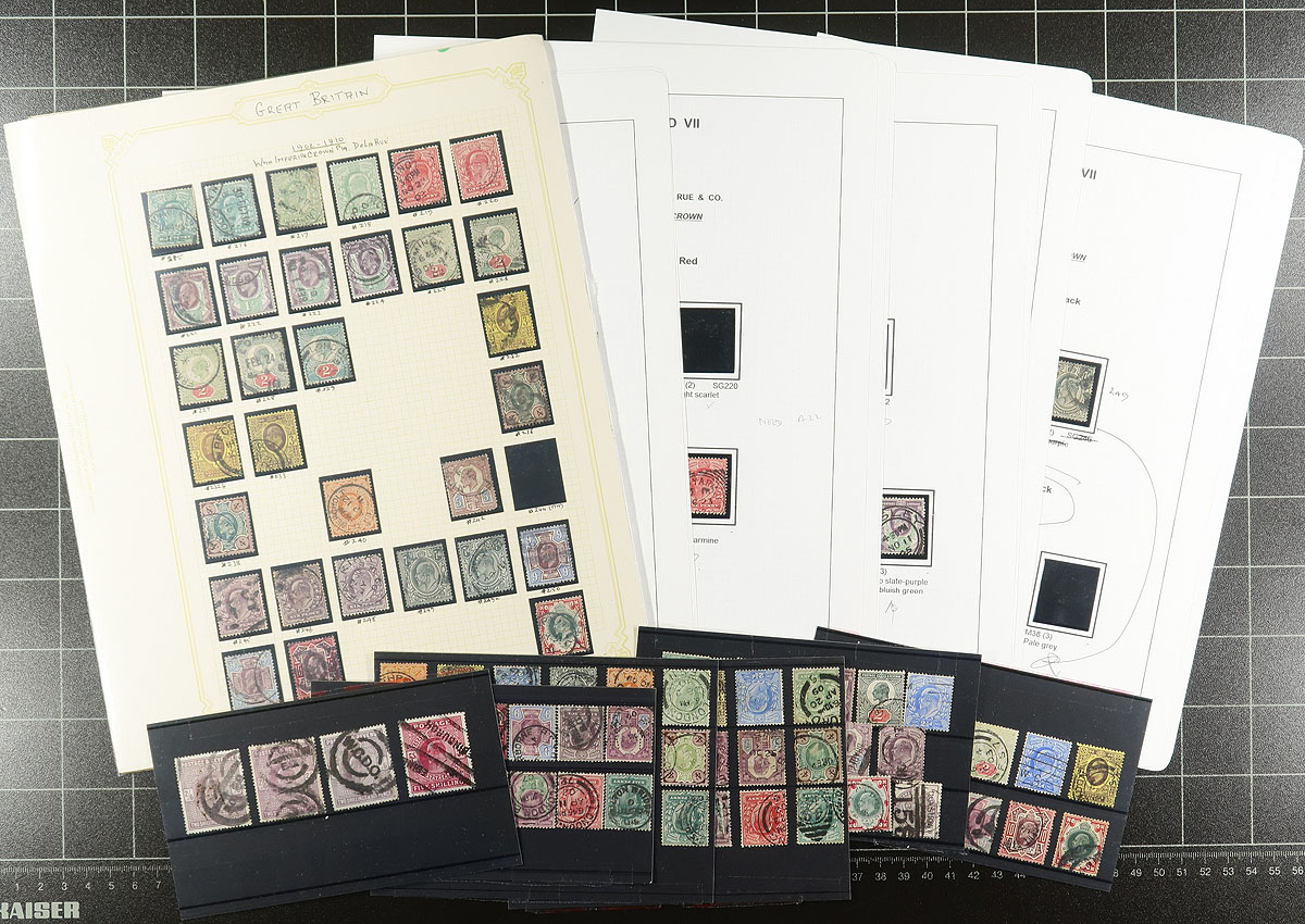 Study Group. This collector was at the first stage of building a used King Edward VII collection with all the various printings and shades. This involved buying everything he could put his hands on, including random sets and singles (up to 5/-) as well as existing colour shade studies. They are all here and rather than break them up, we will let someone else carry on with this work. Conservate Scott catalogue value US$2000.00 =