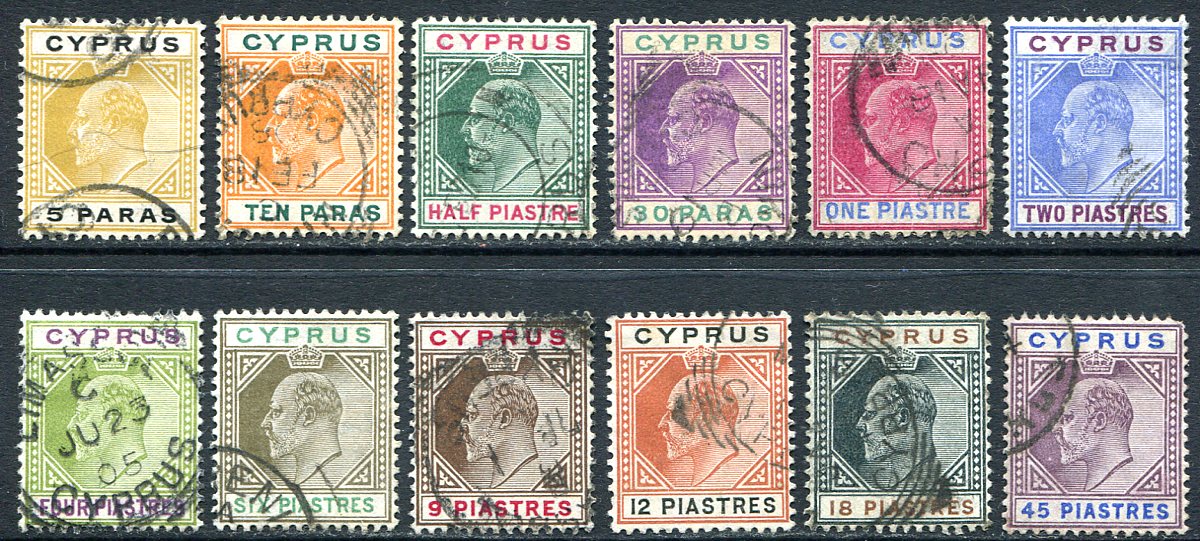 A complete used set of the second King Edward VII issue of 1904-1907, most with clean cancels, most not obstructing the King’s face. 2024 Scott US$315.60 =