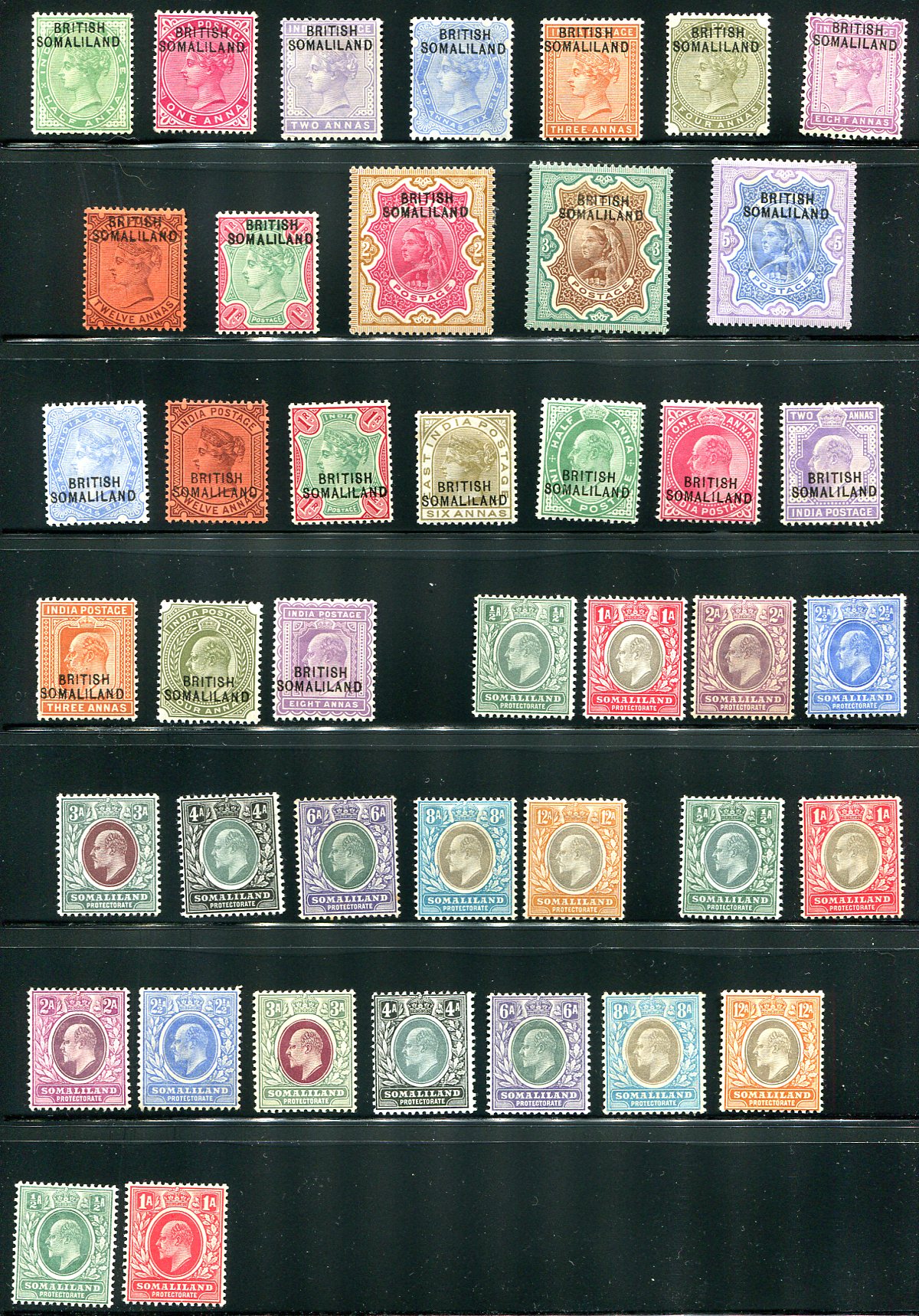 A terrific run of mint Queen Victoria to the end of the King George V definitives, with values to 5 rupees. Starts with over 20 India stamps overprinted, and then colonial design definitives for King Edward VII and KGV, in both watermarks. Obviously fresh, but what makes this lot stand out is how many of the stamps are lightly hinged. Only a few gum bends or heavy hinging seen. 2024 Scott US$588.40 =