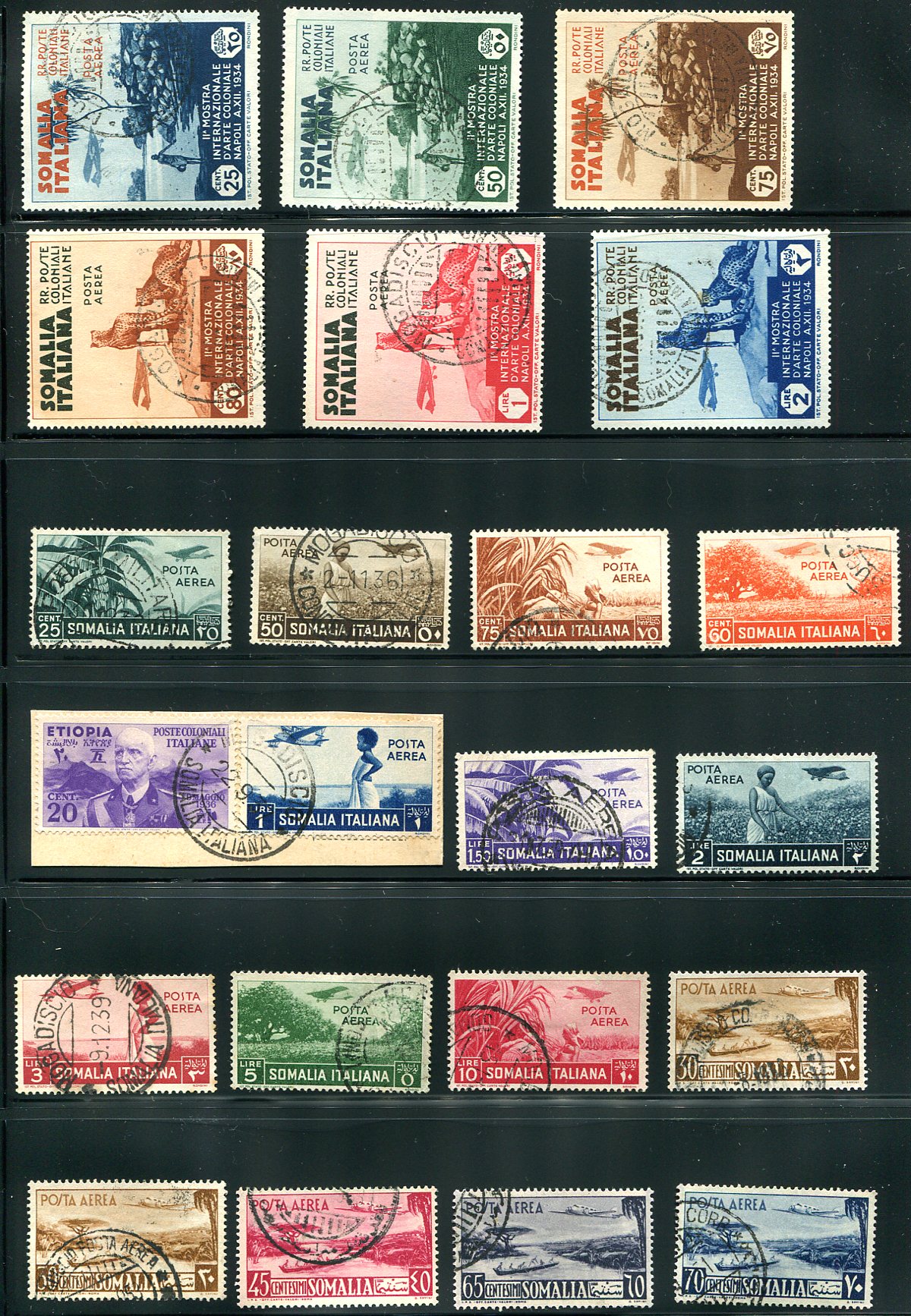 A nearly complete offering of the used airmails from 1934-1958 (missing only the inexpensive #C37-38, #C49-C51). Lovely African themes, the earlier issues being heavily influenced by the Italian occupation. Nicely cancelled with few, if any, faults. 2024 Scott US$452.95 = $611.50 CDN @1.35