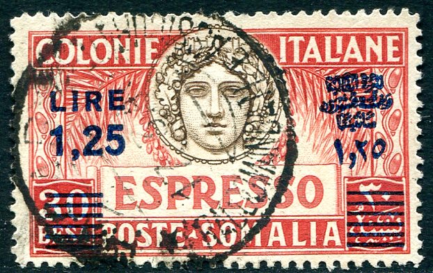 Key blue revalued Special Delivery issue of 1927 in the good perf 14 with "socked on the nose" circular date stamp. There is one slightly short perf at the top (centre), mentioned "for the record", the only blemish on an otherwise beautiful stamp. Previous owner initial on the back. 2024 Scott US$950.00 =