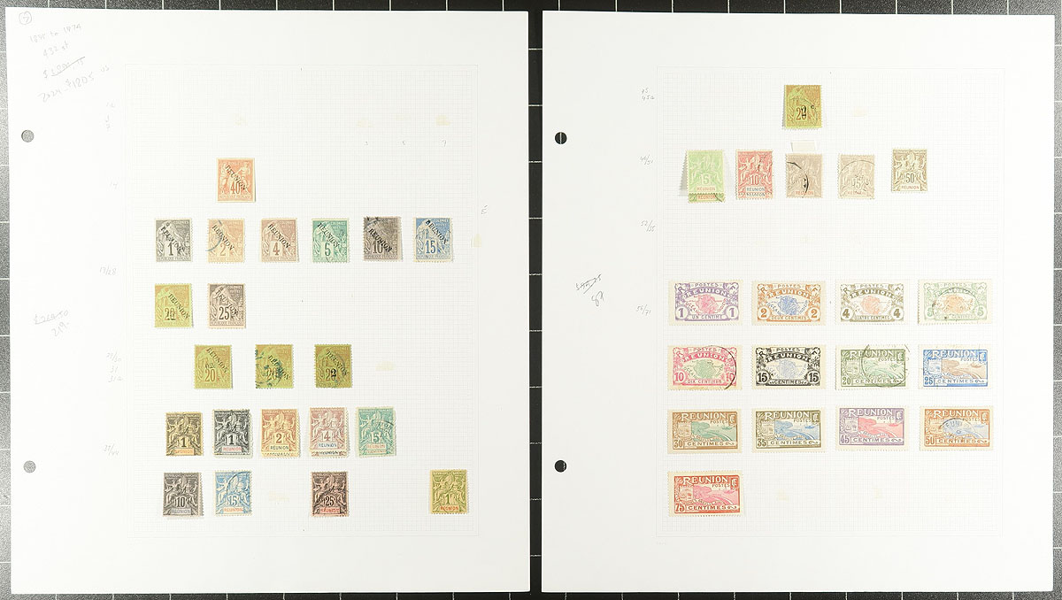 Attractive selection of 432 mint and used stamps from the 1891-1974 period, including "back of the book" issues (notably #C41). Strength in the 1940's-1950's overprints. All hinged on quadrilled pages. An uncounted bonus item is #321 in a Deluxe Proof. A wonderful opportunity to pick up a much more comprehensive offering than usually seen. Owner's 2024 Scott US$1805.00 =