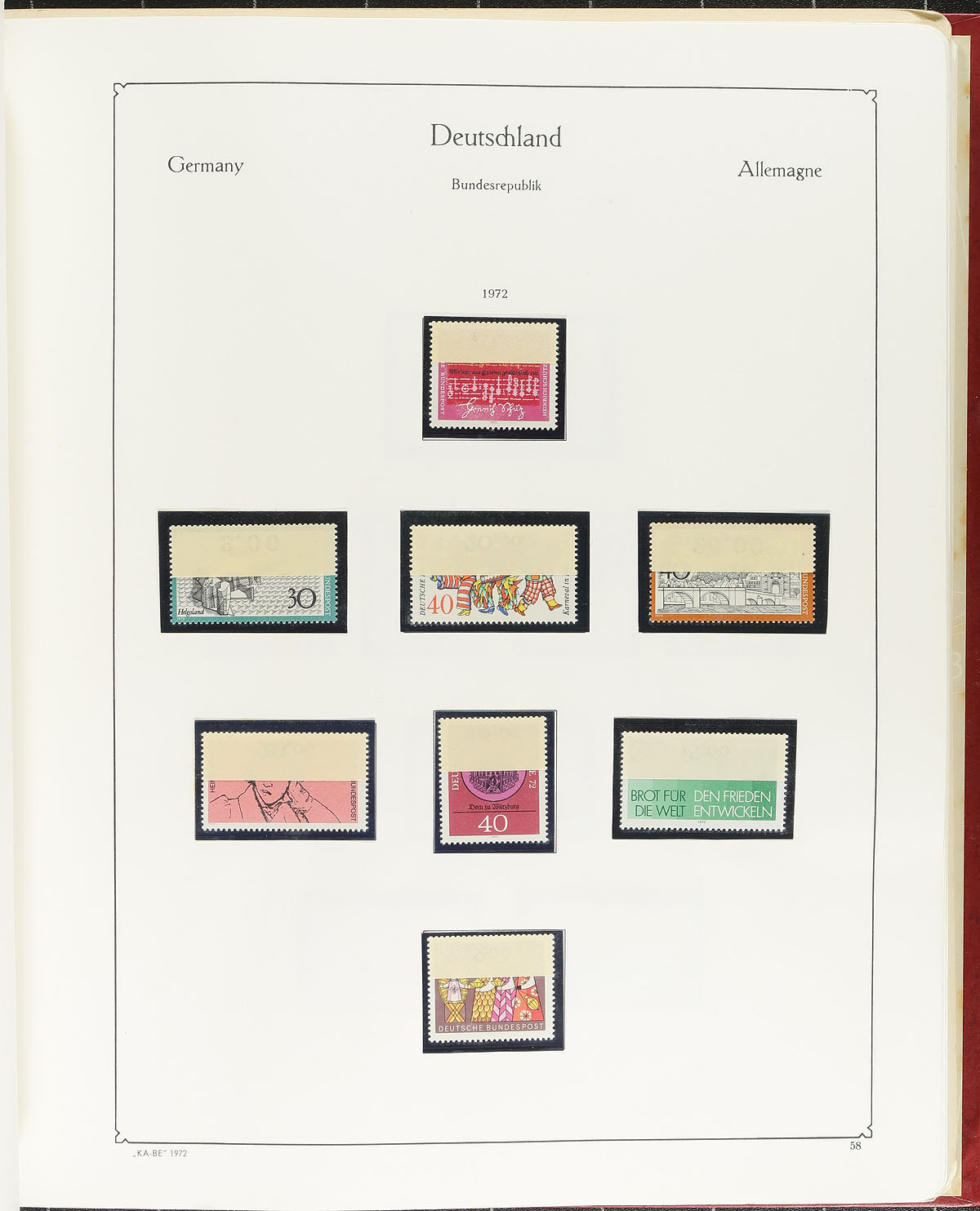 Lovely collection of 1947-1982 issues, mixed mint and used early issues with some choice key used semi-postal sets and mostly mint (#664a) from 1957 onward with all mint stamps in the collection never hinged (except for a couple on the first page). Mounted on vintage mostly "KA-BE" pages and many from with attached sheet margin folded forward. Includes Michel-listed varieties on Postal Tax issues, and the overall Scott catalogue value is likely to top US$2000.00. A total of 1225 stamps and 23 S/S. Estimate =