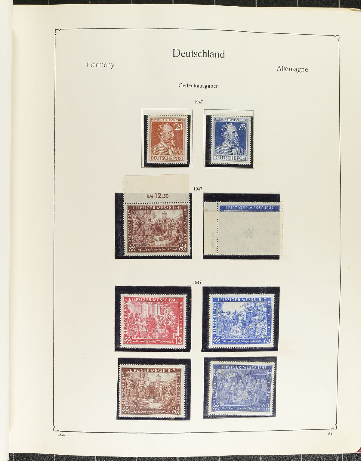 Lovely collection of 1947-1982 issues, mixed mint and used early issues with some choice key used semi-postal sets and mostly mint (#664a) from 1957 onward with all mint stamps in the collection never hinged (except for a couple on the first page). Mounted on vintage mostly "KA-BE" pages and many from with attached sheet margin folded forward. Includes Michel-listed varieties on Postal Tax issues, and the overall Scott catalogue value is likely to top US$2000.00. A total of 1225 stamps and 23 S/S. Estimate =