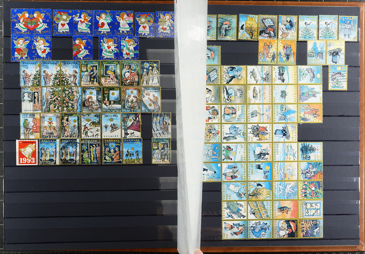 Phenomenal collection of Christmas Seals in 3 matching brown Uni-Safe 16-page stockbooks. Includes regular issues from 1904 to 2010 (complete!) plus other private Danish Christmas Seals, booklets, commercial covers with seals, complete panes, early imperfs and mint Christmas issue souvenir sheets from 2009-2010. 2012 AFA Nordisk Julemaerkerkatalog DKK12187.00 in Canadian Dollars =