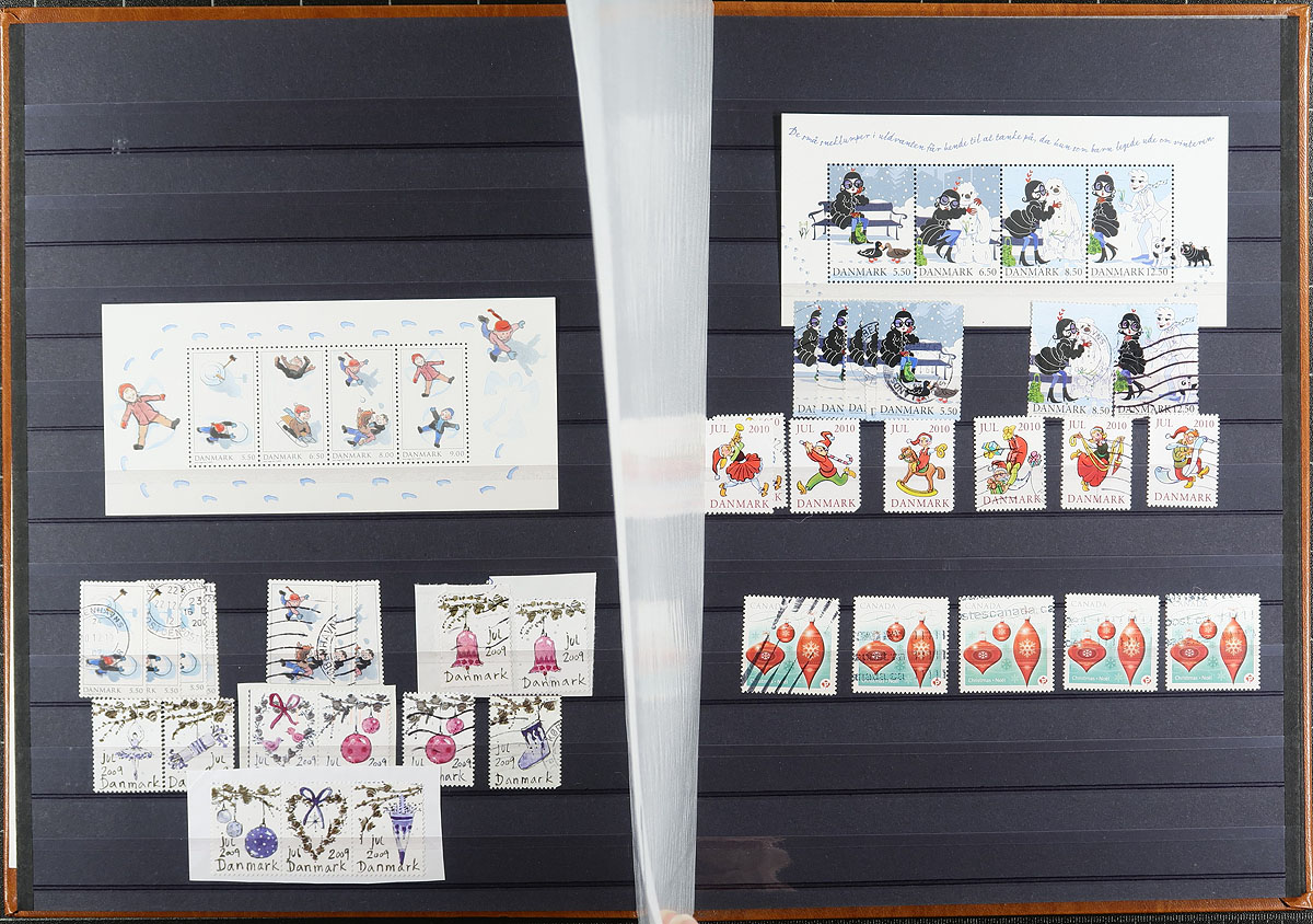 Phenomenal collection of Christmas Seals in 3 matching brown Uni-Safe 16-page stockbooks. Includes regular issues from 1904 to 2010 (complete!) plus other private Danish Christmas Seals, booklets, commercial covers with seals, complete panes, early imperfs and mint Christmas issue souvenir sheets from 2009-2010. 2012 AFA Nordisk Julemaerkerkatalog DKK12187.00 in Canadian Dollars =