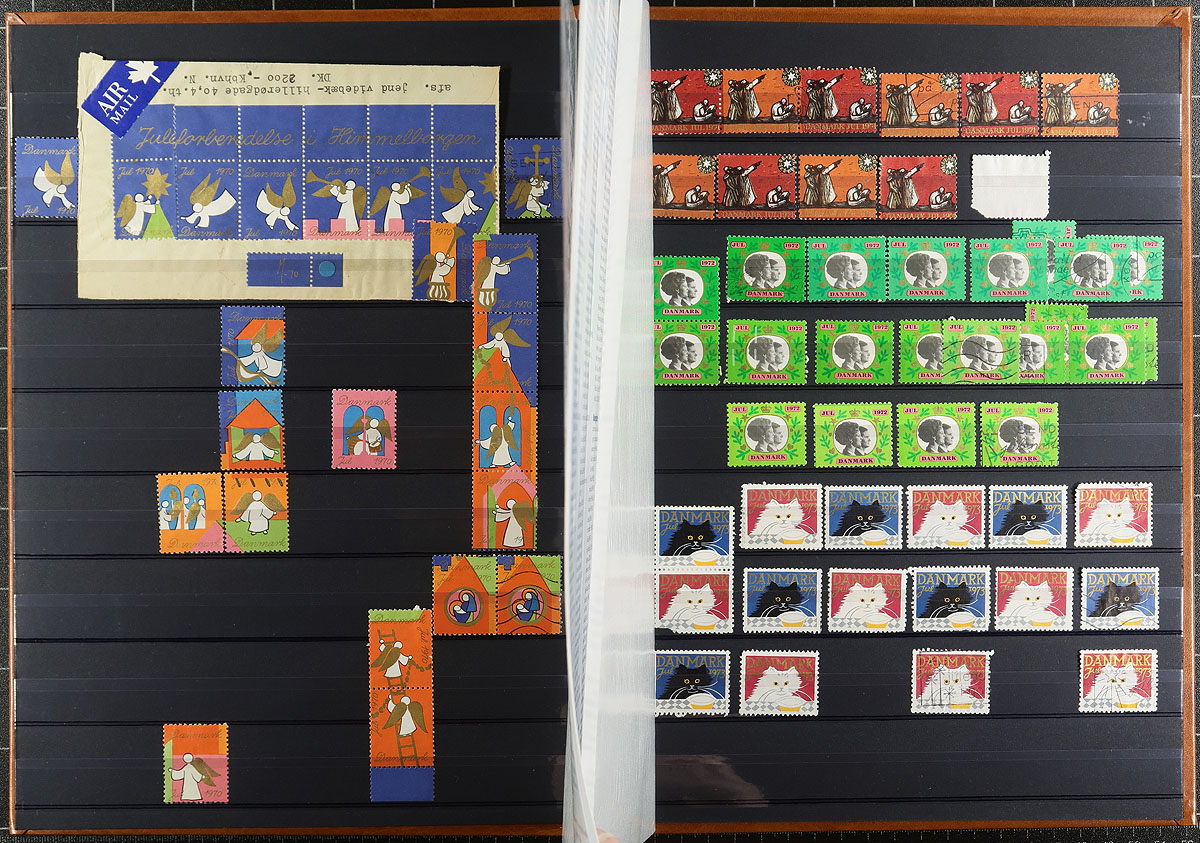 Phenomenal collection of Christmas Seals in 3 matching brown Uni-Safe 16-page stockbooks. Includes regular issues from 1904 to 2010 (complete!) plus other private Danish Christmas Seals, booklets, commercial covers with seals, complete panes, early imperfs and mint Christmas issue souvenir sheets from 2009-2010. 2012 AFA Nordisk Julemaerkerkatalog DKK12187.00 in Canadian Dollars =