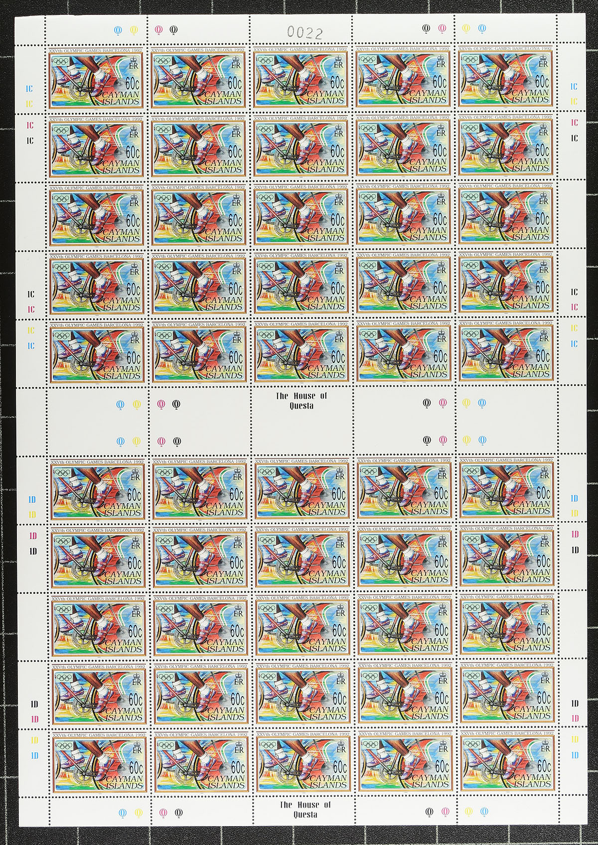 1992 Barcelona Summer Olympics issue in complete "traffic light" gutter panes of 50, all VF mint Never Hinged, printed by "The House of Questa". By the early 1990's print quantities had reduced demand for Cayman Islands material, which subsequently picked up as collectors, including "Olympics" and "sports" topical collectors realized how little material was on the philatelic market. 2024 Scott US$725.00 =