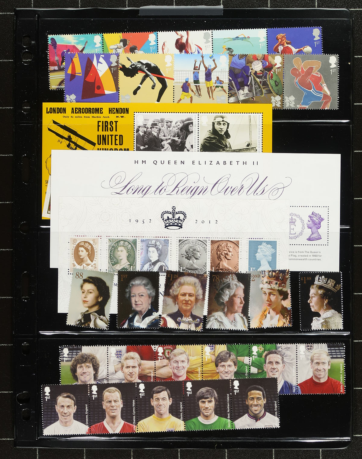 Modern mint commemorative assortment #2: 2008/2015, with strength from 2010-2011. This batch is a mix of commemoratives, Christmas issues and a number of souvenir sheets. All mint never hinged, and all different with no faults are expected. Laid out on several stockpages. This batch has 139 "1st" rate stamps. Total face value £296.78 = $546.10 CDN. Estimate =