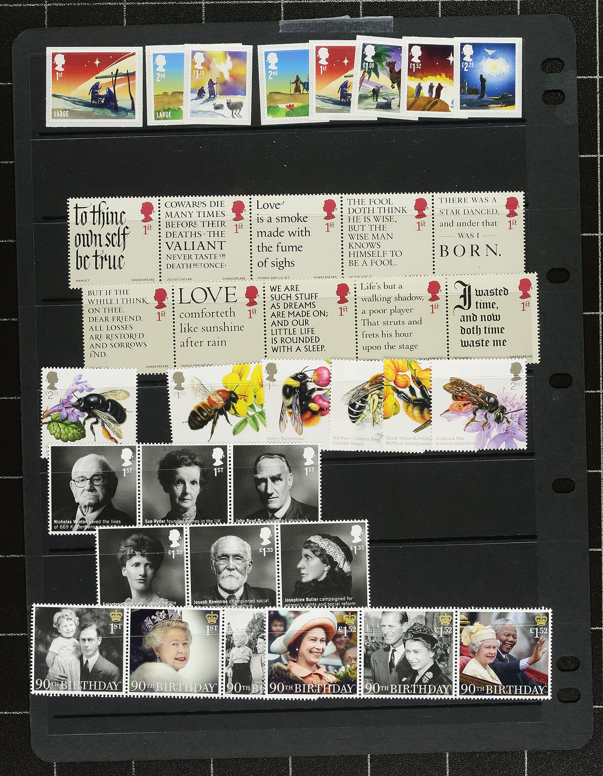 Modern mint commemorative assortment #3: 2009/2015. This batch is a mix of commemoratives, Christmas issues and a number of souvenir sheets. All mint never hinged, all different, with no faults are expected. Laid out on several stockpages. This batch has 137 "1st" rate stamps. Total face value £330.28 = $607.70 CDN. Estimate =