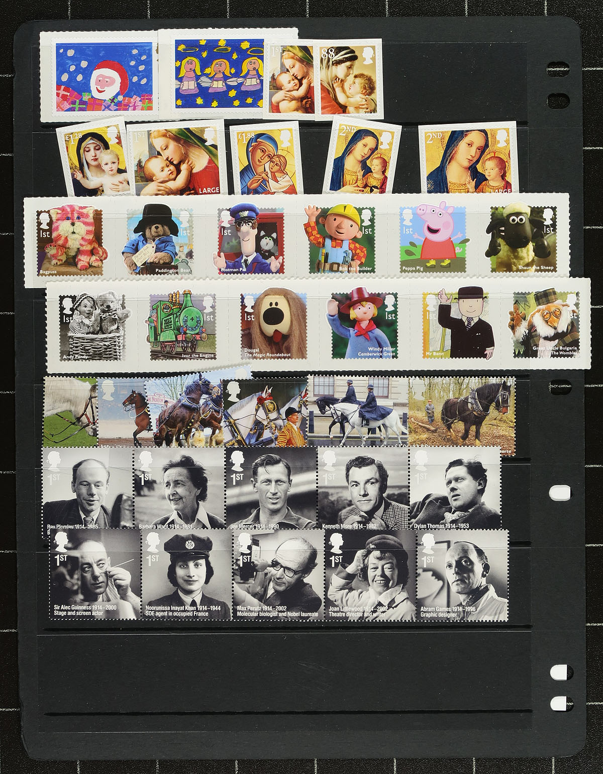 Modern mint commemorative assortment #3: 2009/2015. This batch is a mix of commemoratives, Christmas issues and a number of souvenir sheets. All mint never hinged, all different, with no faults are expected. Laid out on several stockpages. This batch has 137 "1st" rate stamps. Total face value £330.28 = $607.70 CDN. Estimate =