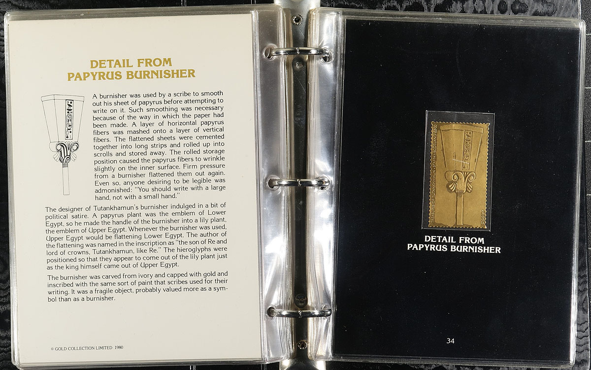 Three Kings (with some family). Includes Tut, Charles and Elvis. These are all commemorative albums that were marketed with an investment edge to them, meaning the purchasers took a bath. But because there is some artistic and philatelic interest, you can pick them up 40+ years later at a fraction of their original price. The King Tut gold foil stamps were produced for the non-UPU Staffa Island (Scotland), and 40 productions are individually described in two custom-made binders (original cost US$800.00!!!). The "King of Rock and Roll" includes a Postal Commemorative Society folder and a couple that are in the size and shape of a vinyl record (they might be duplicates), and a few commemorative covers (mostly focused on the US Elvis issue). The balance is from the British Royal Family with stamps (1972 Wedding anniversary - White Ace, 1977 Silver Jubilee - White Ace, 1977 Silver Jubilee (booklets) - Prangnell, 1977 Silver Jubilee Royal Caribbean tour, 1978 Coronation Silver Jubilee - sheetlets of six, 1981 the future King (Charles) and Diana Wedding). First Day covers are 1977 Silver Jubilee - one booklet of "official" first day covers, the other with "Westminster Collectors Society" cachets and ending with about 15 FDCs from the 1982 Royal Wedding Anniversary. Estimate =