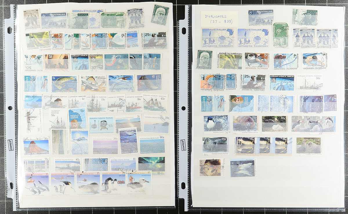 A bundle of former bidboard lots, starting with the earliest "Roos" and King George V "Heads" , going into the early 21st century. Mostly used, with cancel potential and lots of better throughout. Includes some Antarctic Territories (AAT). The mint includes the good brown "Kookaburra" and three gold medal winner sheetlets from the 2000 Olympics. Expect some duplication. The catalogue value of this handful is over US$2000.00. Estimate =