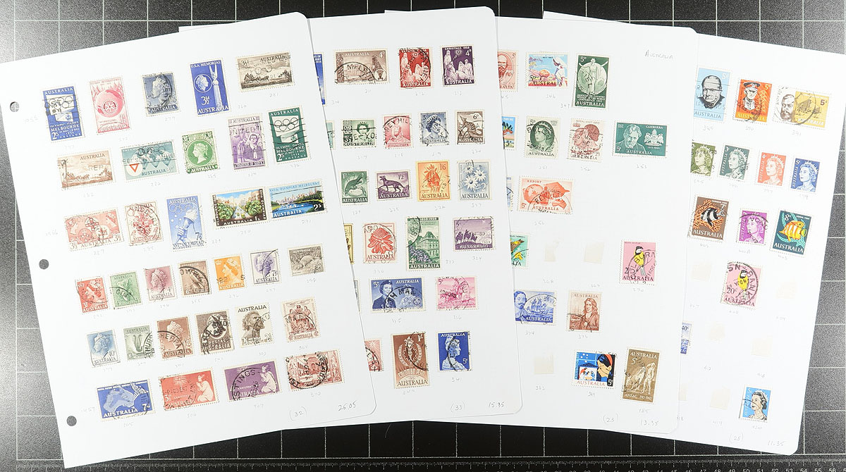 A bundle of former bidboard lots, starting with the earliest "Roos" and King George V "Heads" , going into the early 21st century. Mostly used, with cancel potential and lots of better throughout. Includes some Antarctic Territories (AAT). The mint includes the good brown "Kookaburra" and three gold medal winner sheetlets from the 2000 Olympics. Expect some duplication. The catalogue value of this handful is over US$2000.00. Estimate =