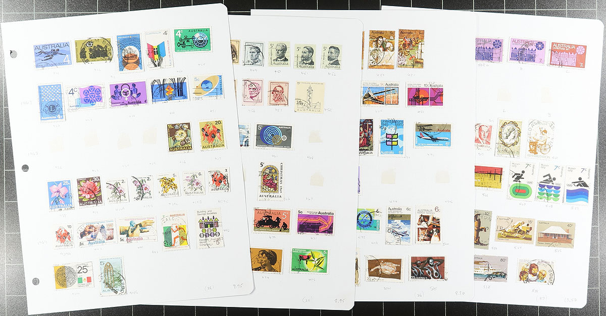 A bundle of former bidboard lots, starting with the earliest "Roos" and King George V "Heads" , going into the early 21st century. Mostly used, with cancel potential and lots of better throughout. Includes some Antarctic Territories (AAT). The mint includes the good brown "Kookaburra" and three gold medal winner sheetlets from the 2000 Olympics. Expect some duplication. The catalogue value of this handful is over US$2000.00. Estimate =